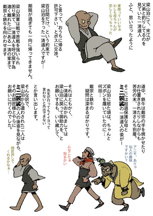 ところで、駆け足で一読しただけでは、柴進と宗江と晁蓋のキャラがかぶってて(元お金持ちの人徳者?多分)区別がつかん。えーん。