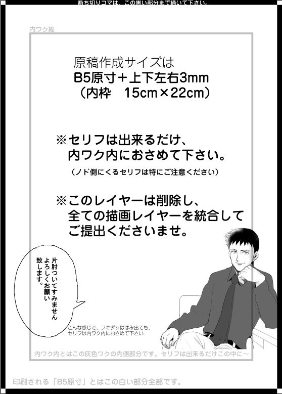 余裕をもって出来るだけセリフは内ワク内に配置して下さい。